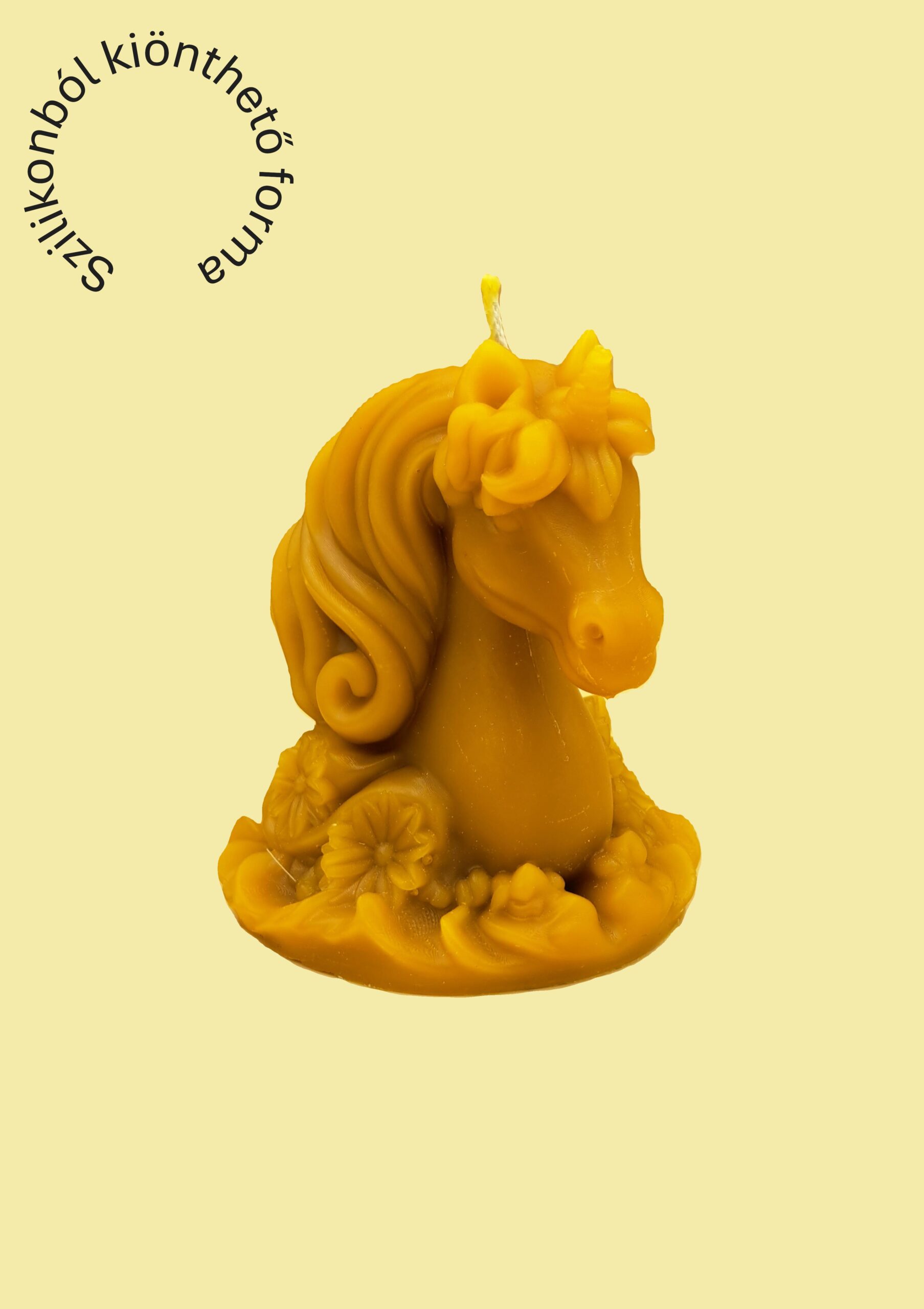 A szilikon forma puha, rugalmas és precízen kidolgozott, így az apró részletek – az egyszarvú sörénye, virágdíszei és finom arcvonásai – mind visszaköszönnek az elkészült gyertyán.