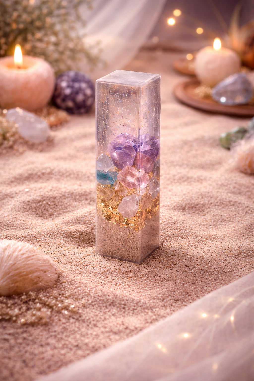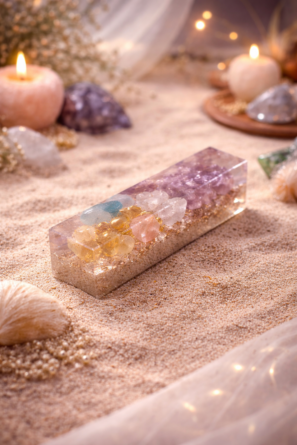 A forma egyik legnagyobb előnye a letisztult geometria. A téglatest alak stabil, jól strukturált és vizuálisan kiegyensúlyozott, ami különösen fontos modern dekorációk készítésénél. A hosszúkás forma lehetővé teszi, hogy a belső tartalom hangsúlyossá váljon, így a kész alkotás nemcsak formai, hanem tartalmi szempontból is érdekes lesz. A képen látható epoxi alkotás jól mutatja, hogyan lehet különböző ásványokat, színeket és rétegeket kombinálni egy ilyen formában, így létrehozva egy egyedi, prémium megjelenésű tárgyat.