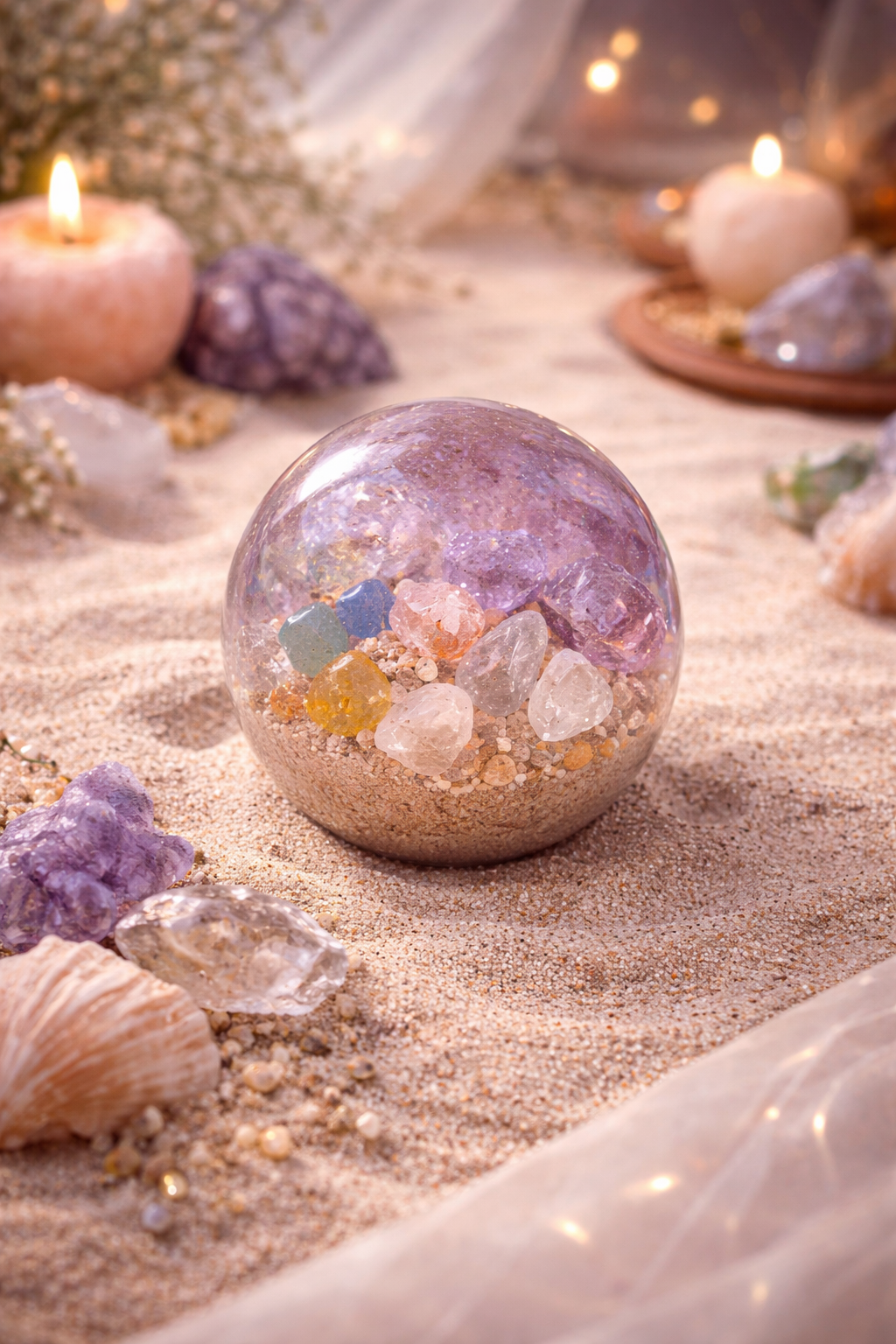 Egy kristályokkal töltött epoxi gömb nemcsak dekoráció, hanem hangulati elem is lehet. Gyakran használják meditációs terekben, lakásdekorációként vagy ajándékként.