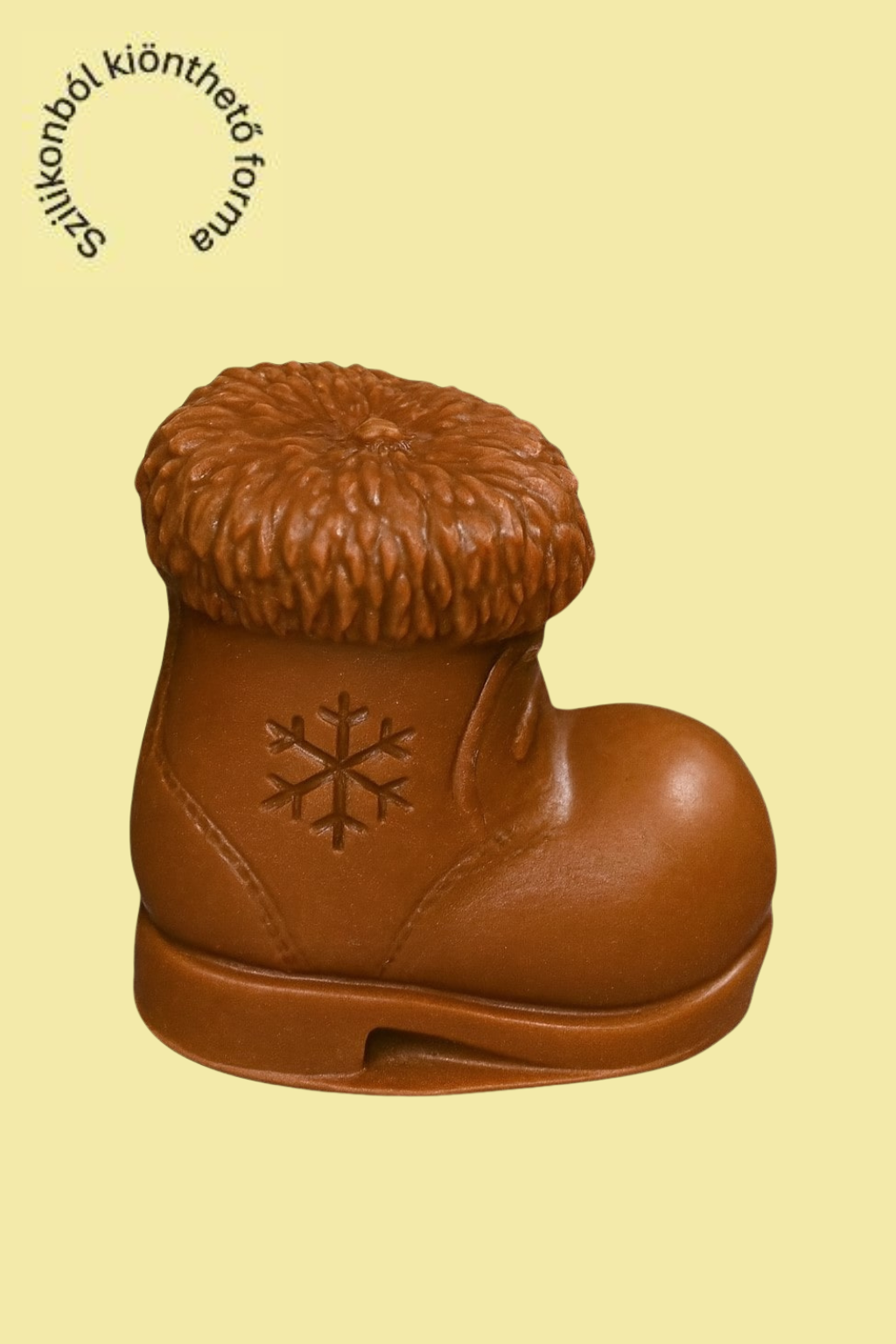 A Profiszilikon által gyártott öntőforma 100%-ban élelmiszeripari minőségű szilikonból készül, 160 °C-ig hőálló, rugalmas, és tapadásmentes felületű. Ennek köszönhetően a csokoládéöntés során a forma pontosan visszaadja a bakancs részleteit — a bolyhos szegélyt, a varrásokat és a hópehely-mintát is. A kész figura mindig tiszta kontúrral, fényes felülettel és tökéletesen élethű kidolgozással készül el.
