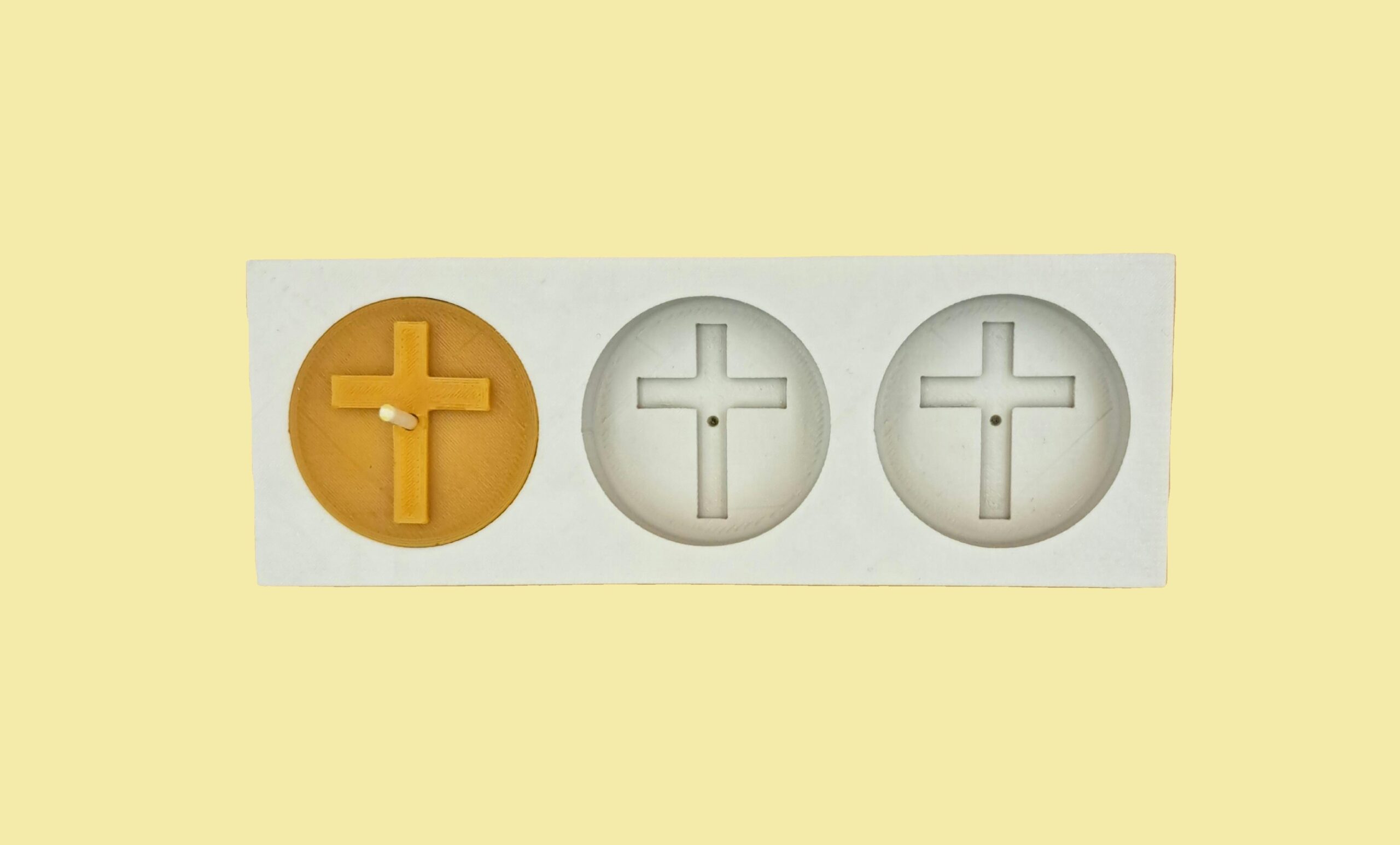 A Profiszilikon által készített forma hőálló, rugalmas és részletgazdag, így a kész mécses minden öntés után élesen kirajzolja a keresztet.