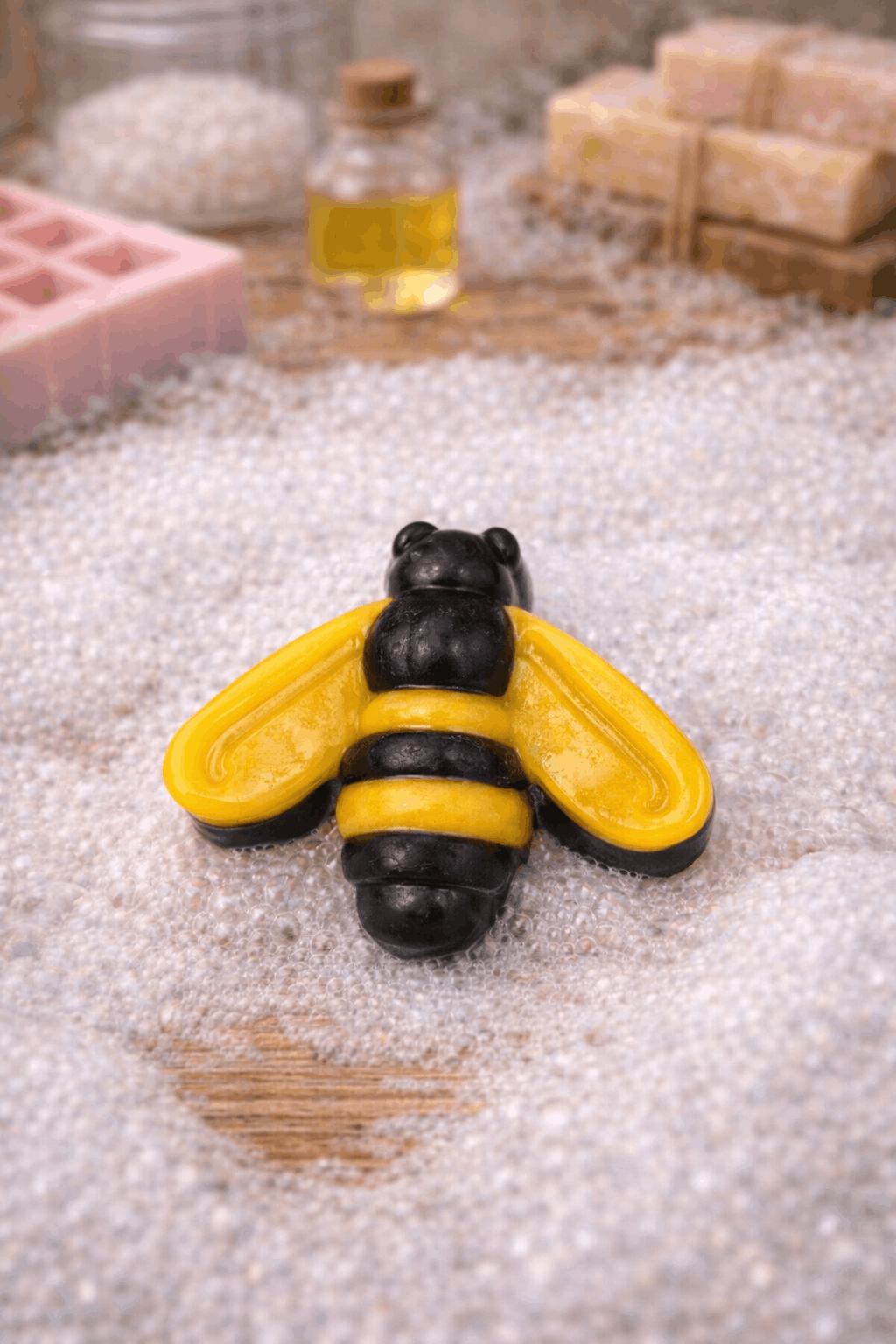 A méhecske forma különösen jól illeszkedik természetes, fenntarthatóságot hangsúlyozó tematikákhoz, így a kész szappanok nemcsak szépek, hanem üzenetet is hordoznak.