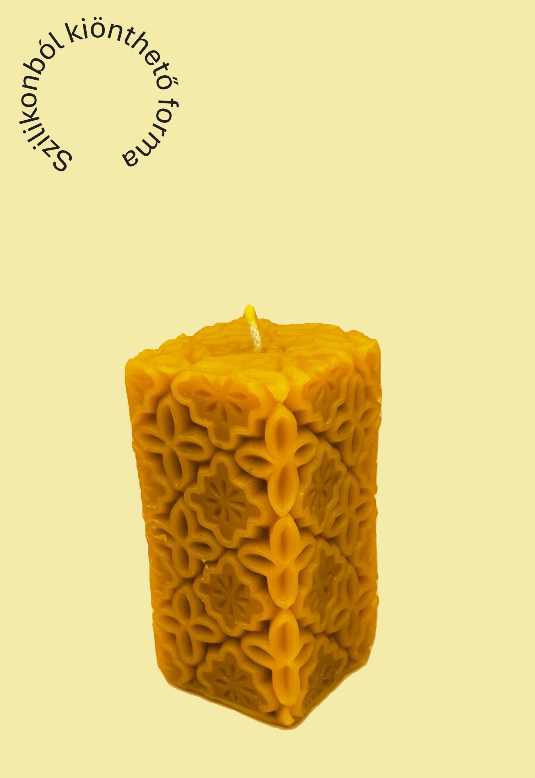 A Modern mintás tömb szilikon gyertyaöntő forma a kortárs stílus és a kézműves gyertyakészítés tökéletes találkozása. A geometrikus, virágra emlékeztető díszítések modern, letisztult hatást keltenek, miközben játékos ritmust visznek a gyertya felületére. Ez a forma azoknak készült, akik a hagyományos gyertyák mellett szeretnének valami igazán stílusos, modern hangulatú dekorációt készíteni.
