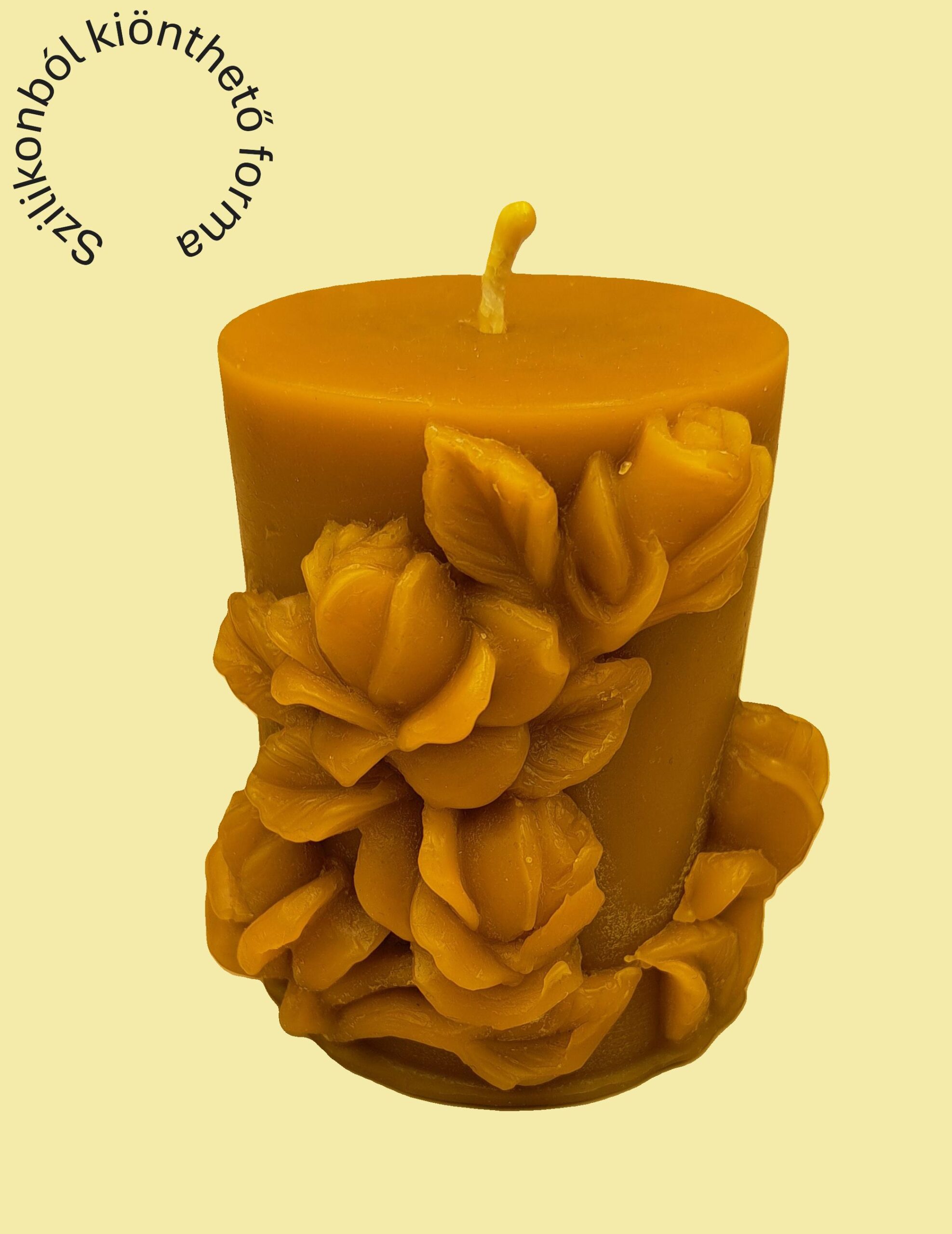 A Rózsás szál szilikon gyertyaöntő forma különlegessége a részletgazdag rózsamotívumokban rejlik. A szirmok plasztikus kidolgozása minden gyertyát egyedi műalkotássá tesz. A rózsa univerzális szimbólum, amely egyszerre hordozza a romantikát, a szépséget és az időtlen eleganciát. A szilikon anyag rugalmassága biztosítja, hogy a legapróbb mintázatok is tökéletesen kirajzolódjanak, miközben a gyertya könnyedén kivehető marad a formából.