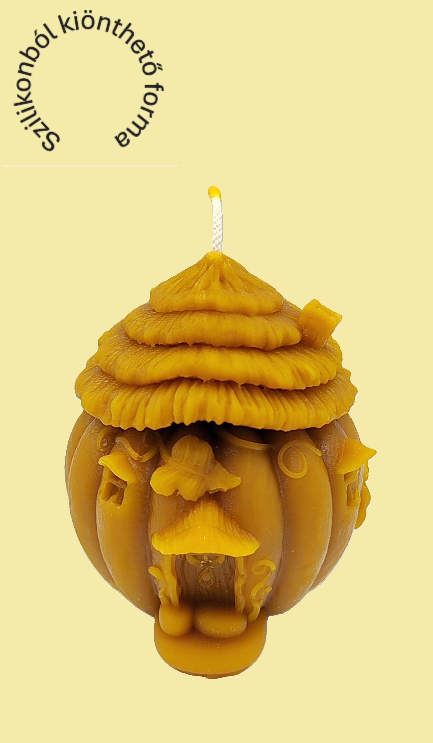 A Tök házikó szilikon gyertyaöntő forma igazán különleges választás azok számára, akik szeretnének egyedi, mesés hangulatú gyertyát készíteni. Az ebből kiöntött gyertya nem csupán egyszerű fényforrás, hanem díszítőelem is, amely életre kelti az őszi esték varázsát. A forma egy faragott tök részletgazdag alakját jeleníti meg, amely aprólékosan kidolgozott házikóvá alakul: látható rajta az ajtó, az apró ablakok, a gombatetős tető és számos olyan díszlet, amely mintha egy tündérmeséből lépett volna elő.